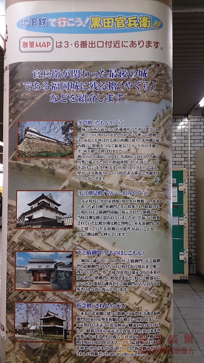 即使《軍師官兵衛》去年已經播畢,現在,在福岡的地鐵站,仍然貼滿了官兵衛各種地緣介紹。
